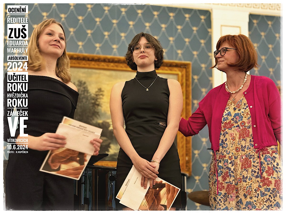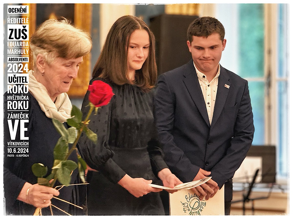 V pondělí 10. června 2024 se uskutečnilo v krásných reprezentativních prostorách vítkovického zámku slavnostní setkání nejúspěšnějších žáků a studentů naší školy. V průběhu celého školního roku opět svými výkony skvěle reprezentovali naši „Marhulku“ na nejrůznějších soutěžních přehlídkách, festivalech a soutěžích nejen v rámci našeho města a kraje, ale úspěšní byli i v celostátní a mezinárodní konkurenci.