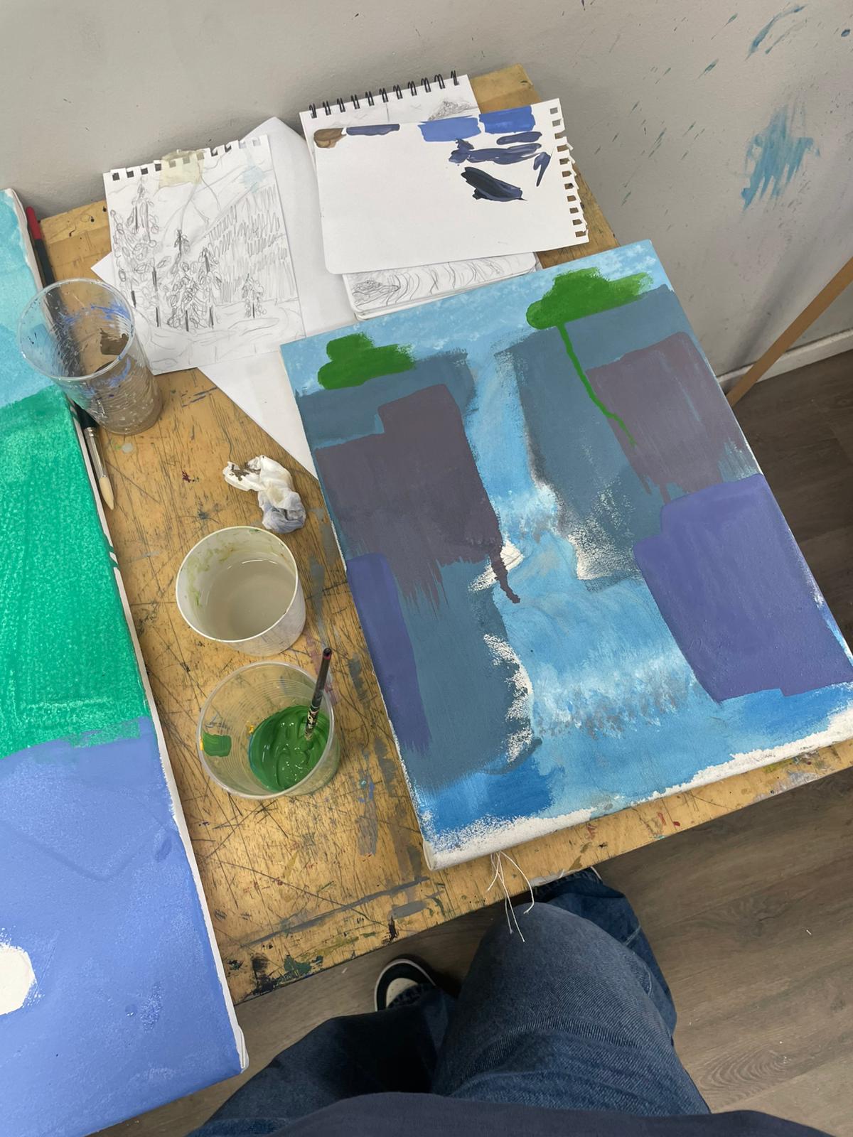Naše cesta za poznáním současné malby pokračuje. V rámci stipendijního projektu Barevné horizonty pro mladé výtvarníky se Magda Jalůvková, studentka z ateliéru Kláry Luxové, vydala již potřetí do inspirativního prostředí ateliéru ZUŠ Biskupská v Praze. Pod odborným vedením uznávaného malíře Davida Hanvalda zde rozvíjela svou tvorbu a posouvala hranice své malířské techniky.
