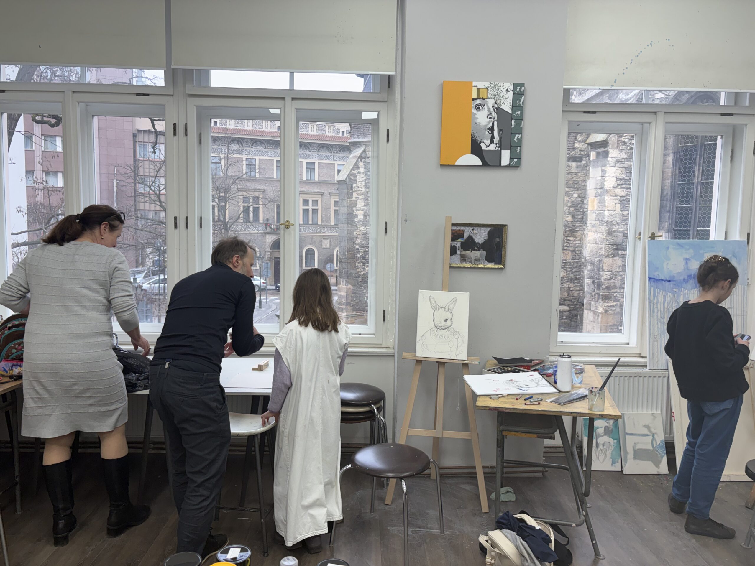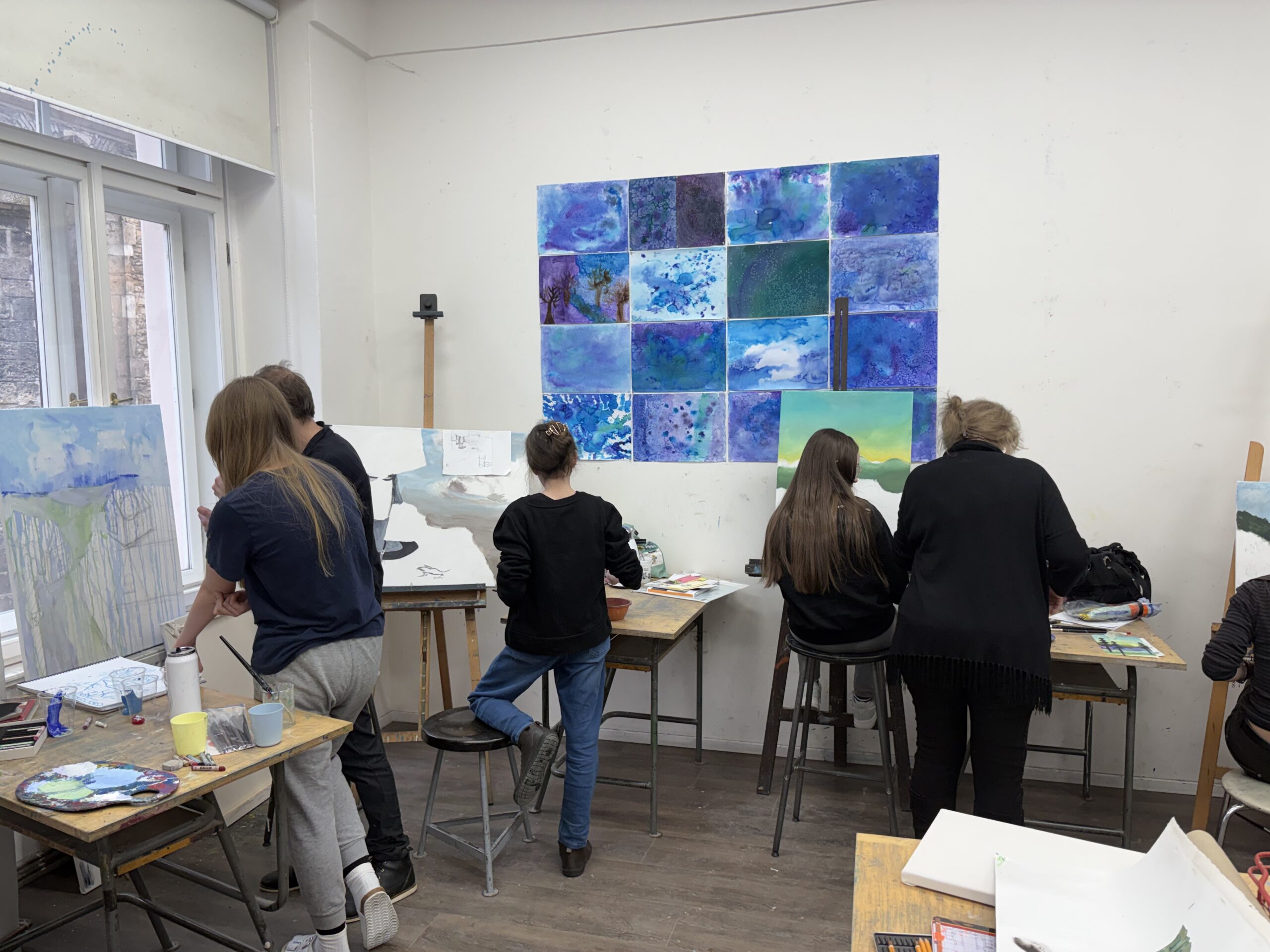 V rámci stipendijního programu Barevné horizonty proběhla v ZUŠ Biskupská v Praze již druhá návštěva zaměřená na výtvarnou tvorbu. Program navázal na úvodní setkání a nabídl účastníkům další intenzivní a inspirativní zkušenosti s malbou na plátno.