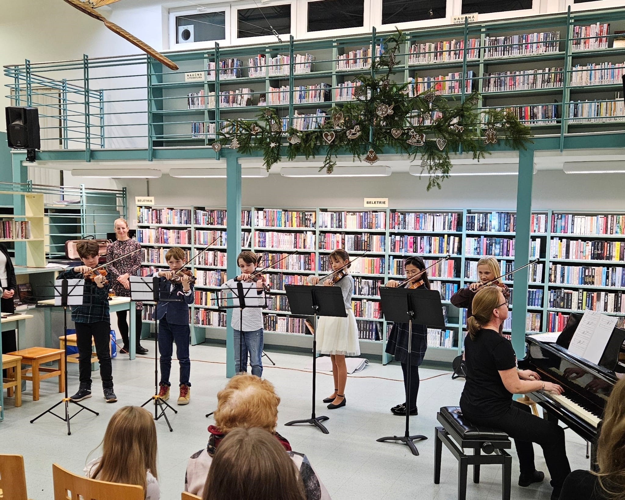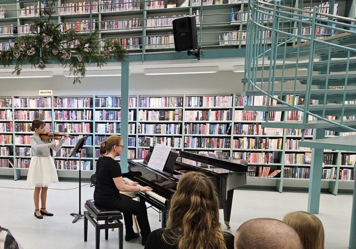 Hudební paletu vůní, tentokrát s příchutí perníku, svým rodičům a našim věrným posluchačům namíchali naši žáci a pedagogové v pondělní adventní podvečer. Ten patřil, již tradičně, našemu koncertu v Knihovně města Ostravy, v pobočce Jiřího Trnky. A protože blížící se sváteční čas si vyloženě říká o nějakou tu vánoční tématiku, o výzdobu prostor knihovny se letos postarali naši žáci a studenti Akademie 3. věku výtvarného oboru, kteří pod vedením Kláry Luxové vytvořili nádherné perníkové dekorace, které dotvořily nejen atmosféru našeho perníkového koncertu, ale zůstanou v knihovně i po zbytek vánoční půjčovní doby a potěší oči čtenářů.