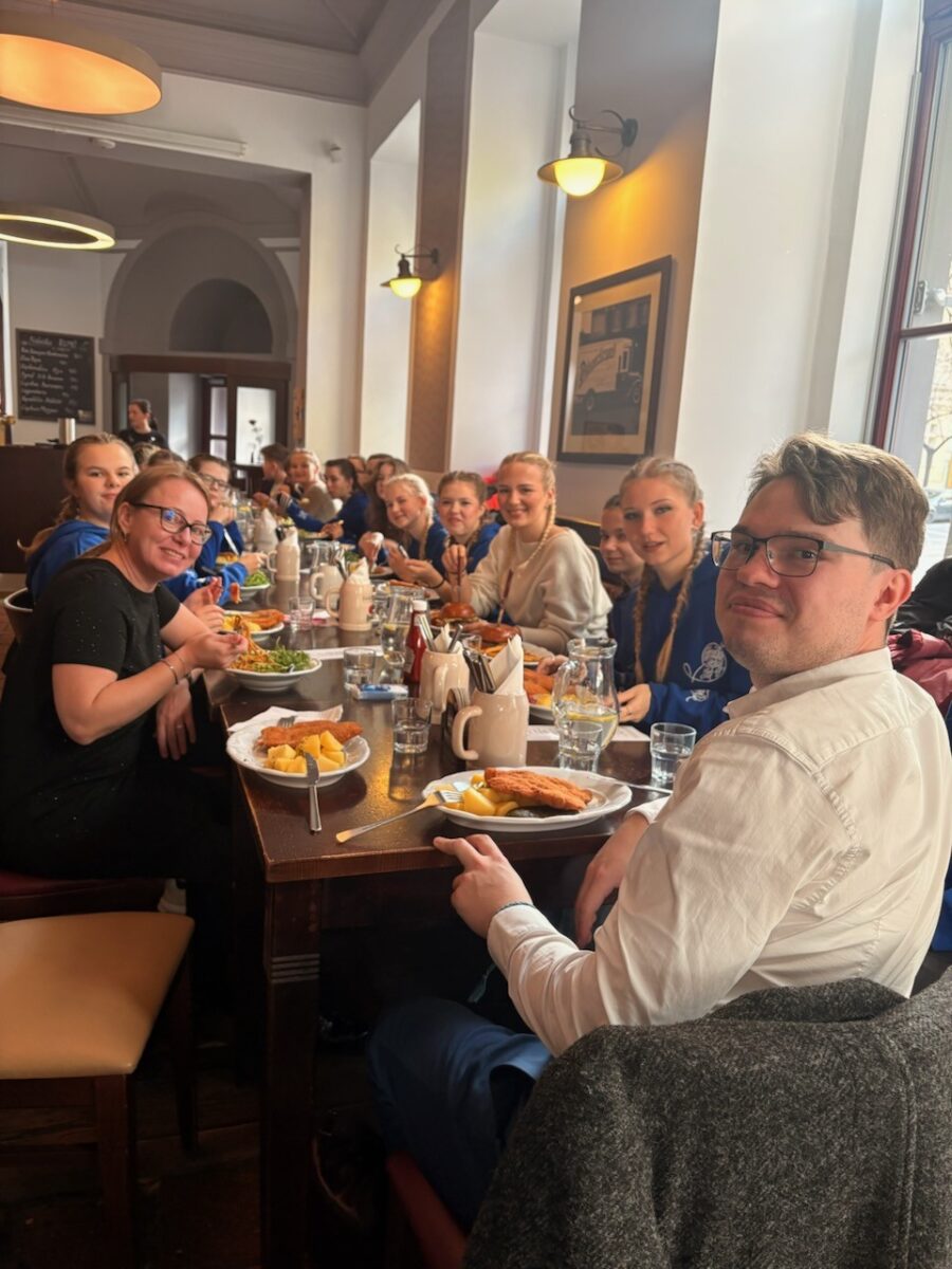 Po příjezdu do Prahy jsme se nejprve posilnili vydatným obědem a poté se přesunuli do Studia S1, kde nás čekala akustická zkouška. Pro děti byl zážitek slyšet prostor, který dobře znají z rozhlasových nahrávek – jeho citlivá a zároveň monumentální akustika dodala našemu vystoupení nový rozměr.