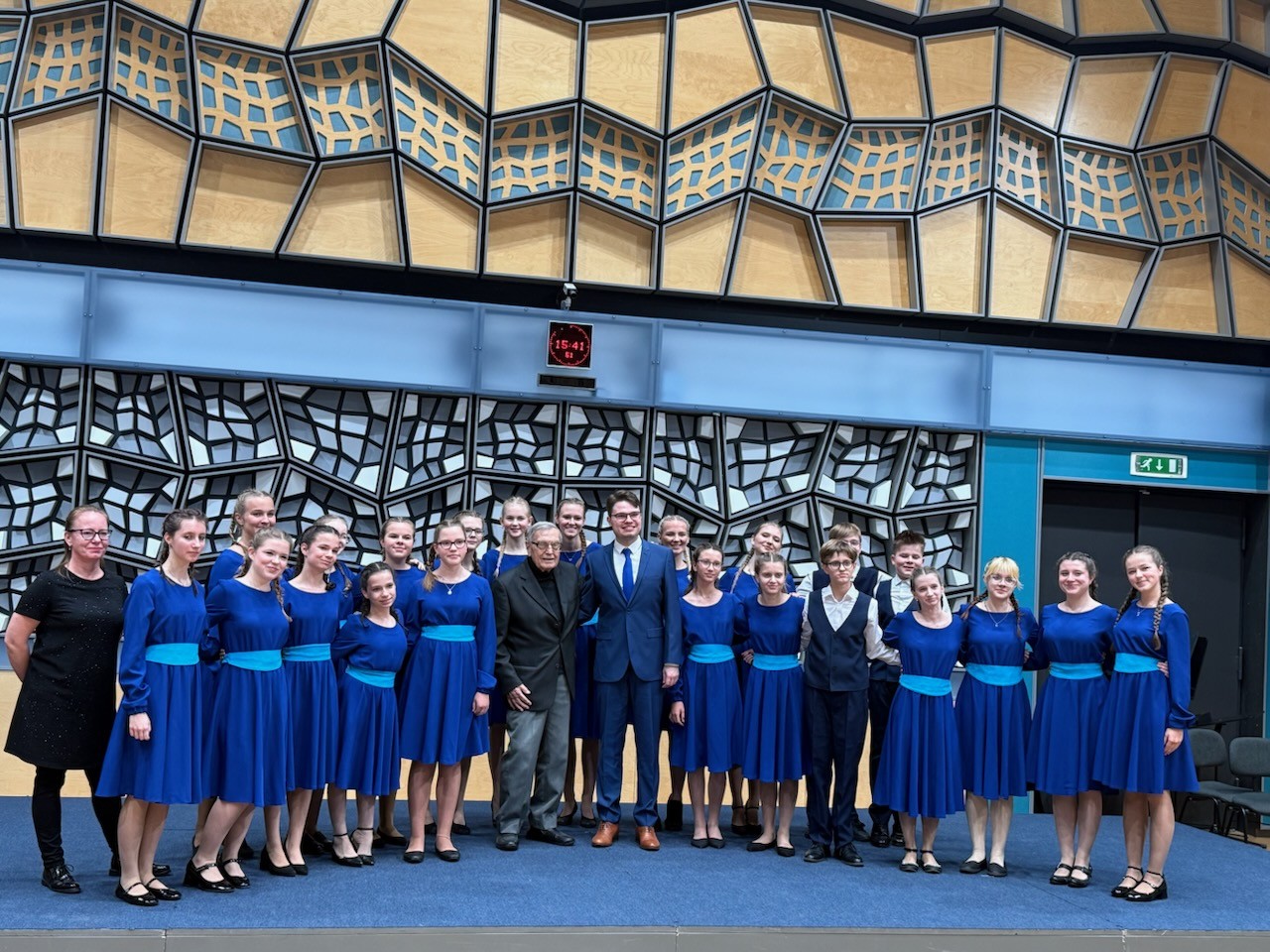 Po skončení koncertu jsme měli vzácnou možnost osobně se setkat se skladatelem Jiřím Temlem, jemuž byl celý program věnován. Proběhla drobná konverzace a společně jsme se vyfotili. Temlova tvorba nás provází dlouhodobě – před dvěma lety jsme uvedli jeho Gloria in excelsis Deo – a dnešní návrat k jeho hudbě byl pro sbor silným zážitkem.