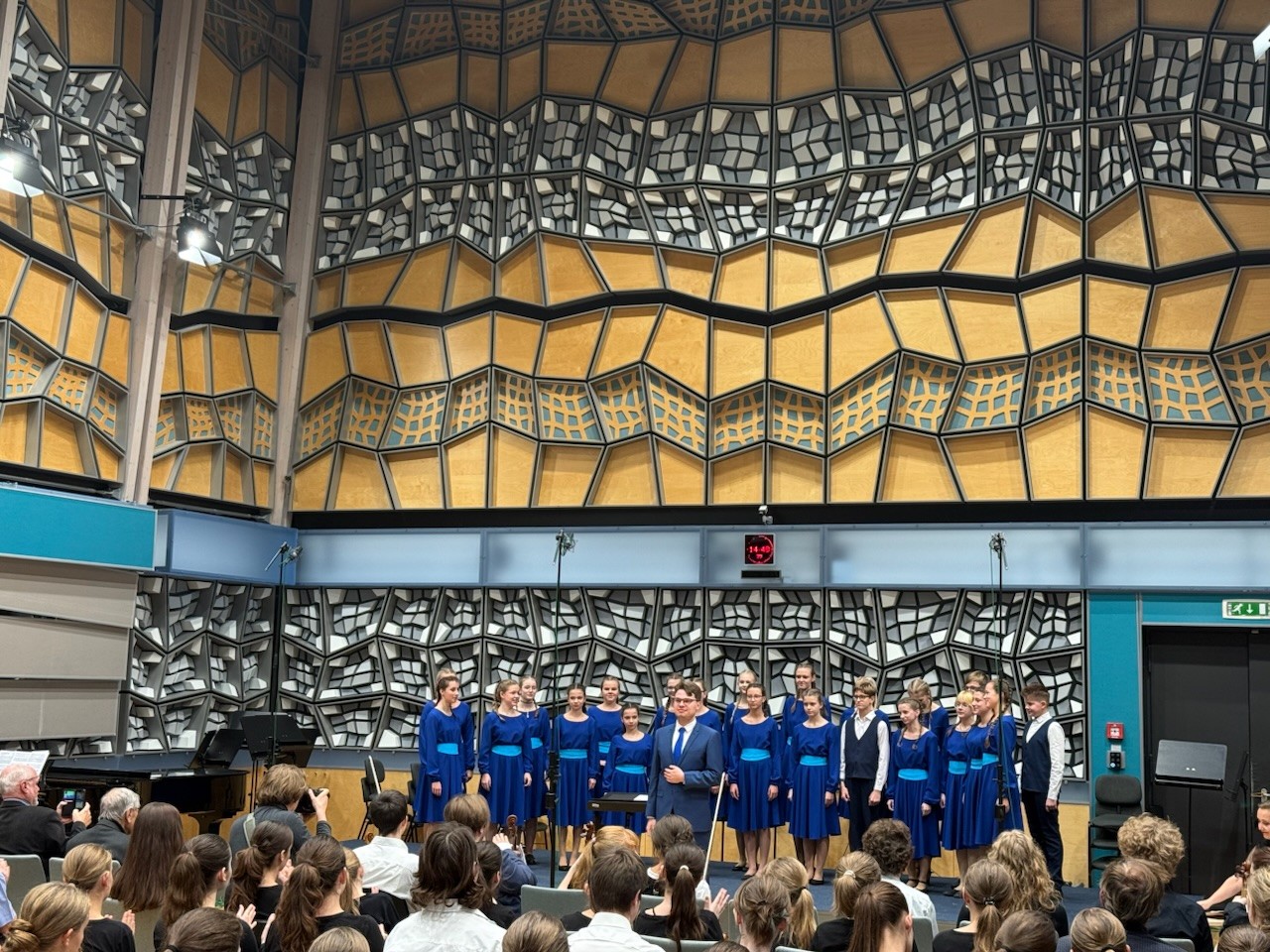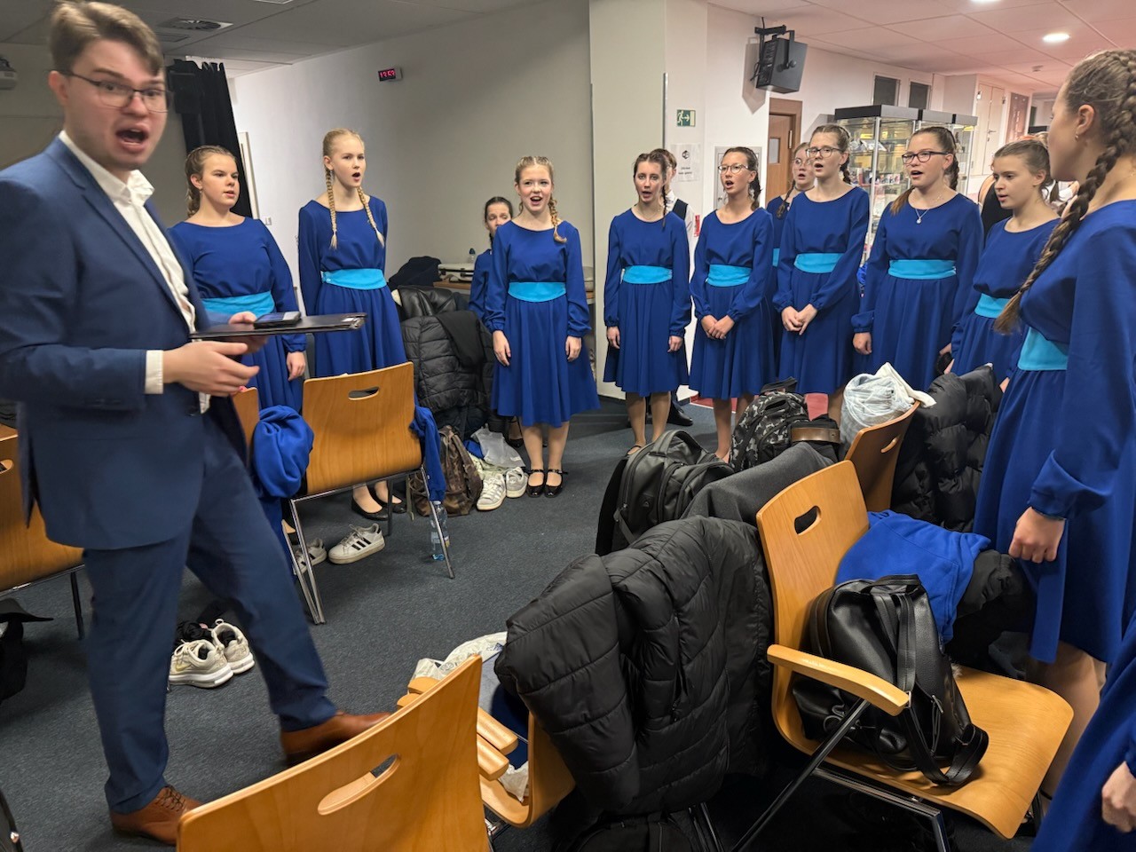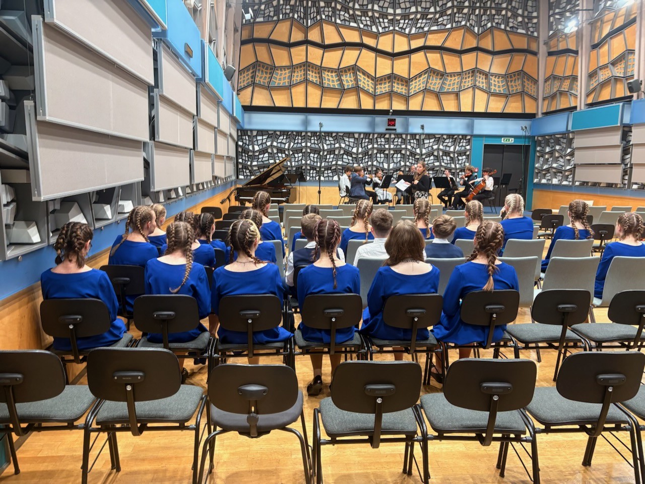 Po příjezdu do Prahy jsme se nejprve posilnili vydatným obědem a poté se přesunuli do Studia S1, kde nás čekala akustická zkouška. Pro děti byl zážitek slyšet prostor, který dobře znají z rozhlasových nahrávek – jeho citlivá a zároveň monumentální akustika dodala našemu vystoupení nový rozměr.