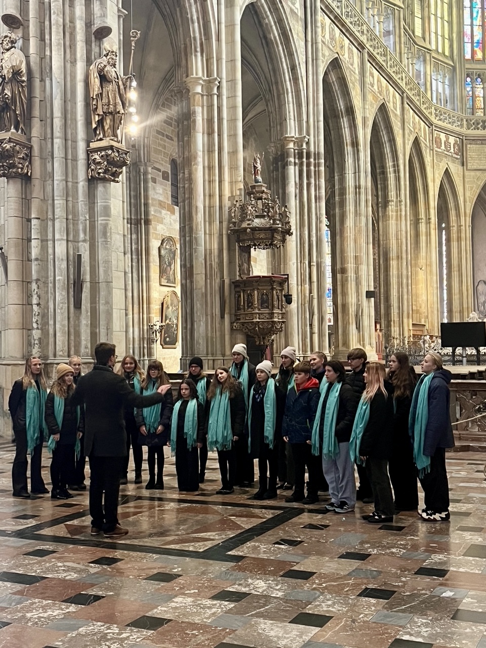 V neděli jsme se zúčastnili festivalové mše v Katedrále sv. Víta na Pražském hradě. Spolu s ostatními sbory jsme si zazpívali písně Dona Nobis Pacem a Spirit of God, po skončení mše pak hlavní sbor zazpíval ze svého stálého repertoáru Pater Noster od Xabiera Sarasoly. Spokojeni a namotivováni k dalšímu zpívání jsme se v neděli odpoledne vydali zpět do Ostravy.