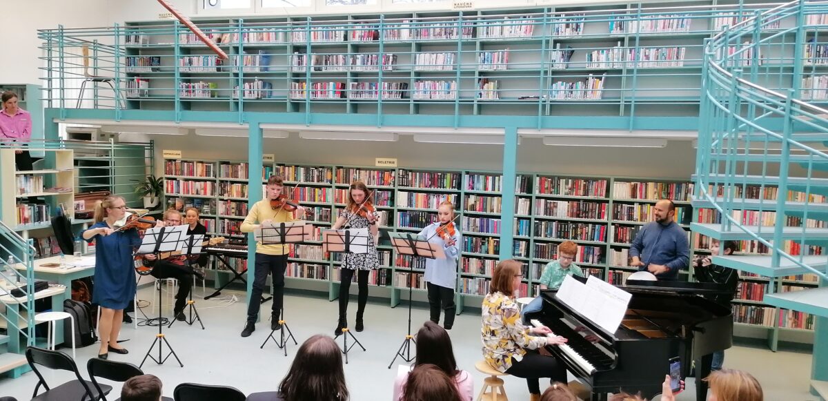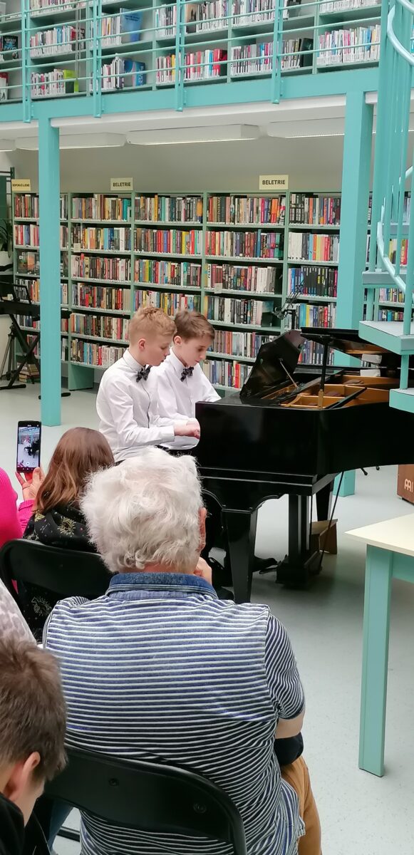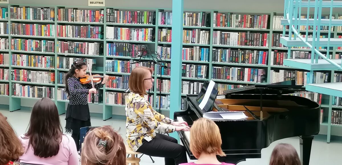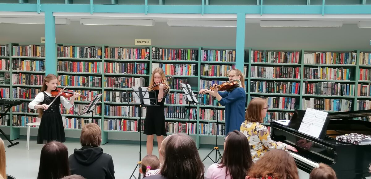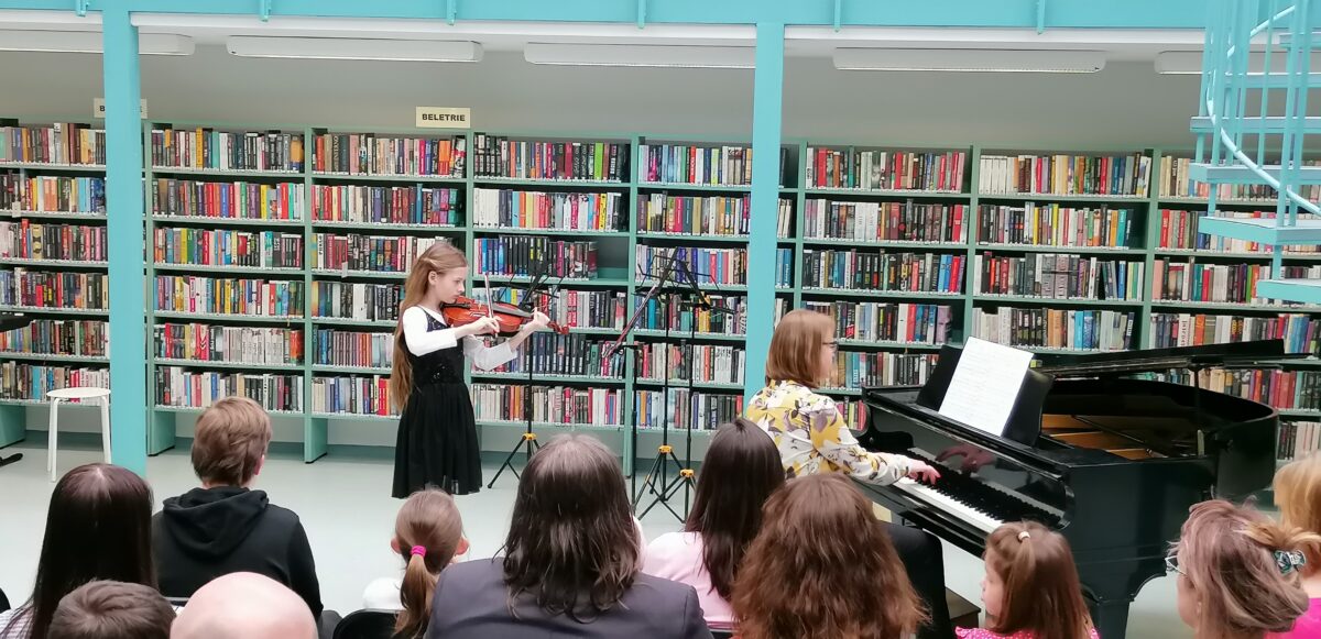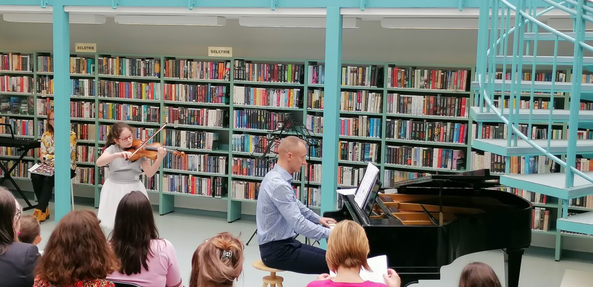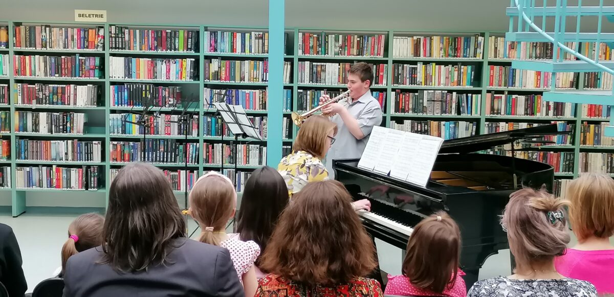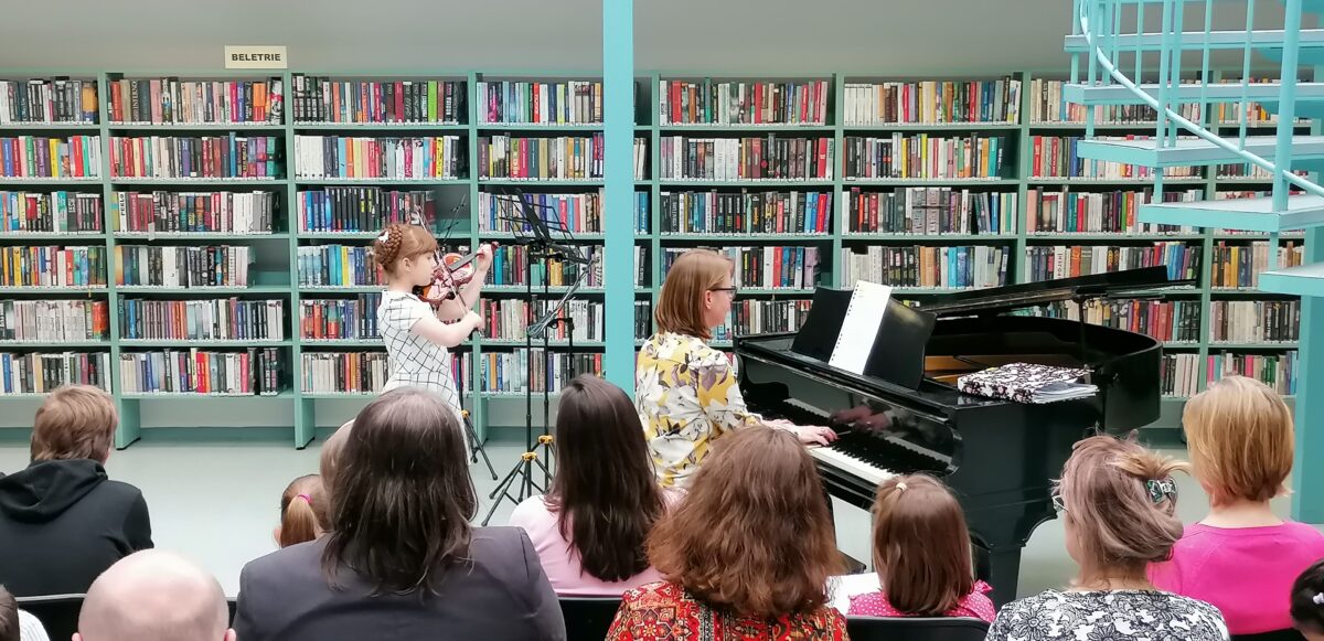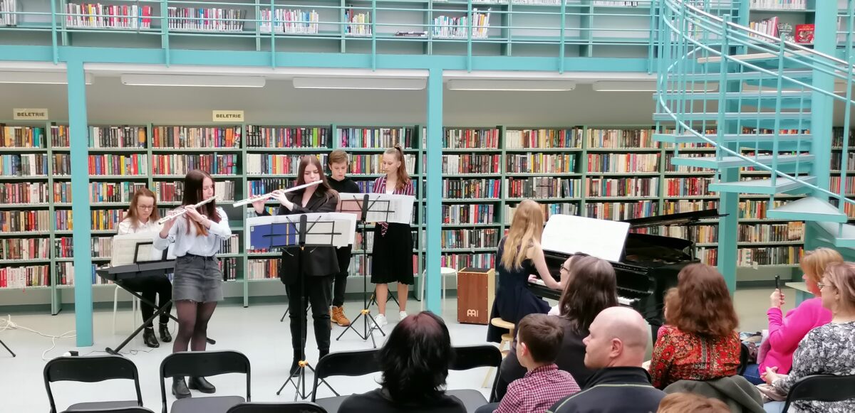 Během příjemného jarního odpoledne se konal malý, ale velmi oblíbený koncertík v knihovně. Bok po boku zde hráli žáci i učitelé a rozhodně úsměv na rty koncert přinesl. Po dlouhé době jsme měli možnost si opět společně zamuzicírovat. Na pódiu se představili ti nejmladší ale i starší žáci. Po dlouhé pauze se všichni velmi statečně drželi a atmosféra celého odpoledne se nedala popsat jinak než příjemnou a pohodovou. Housle střídal klavír, trubka a zazněly i komorní skladby. Ty sklidily právem největší úspěch. Skladby komorních seskupení v různém nástrojovém složení byly důkazem, že hraní nás baví a byla to nádherná pomyslná tečka za celým odpolednem.