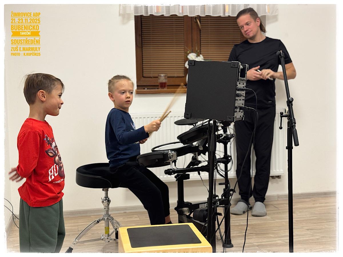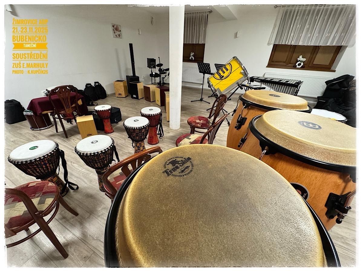 Ve dnech 21.–23. listopadu se v malebném areálu Dobré Pohody v Žimrovicích uskutečnilo jedinečné tanečně-bubenické soustředění žáků ZUŠ Eduarda Marhuly. Toto setkání prolnulo dva světy, které k sobě neodmyslitelně patří – taneční pohyb a rytmickou bubenickou energii – a vytvořilo inspirativní prostor pro kreativitu, spolupráci a společný umělecký zážitek.