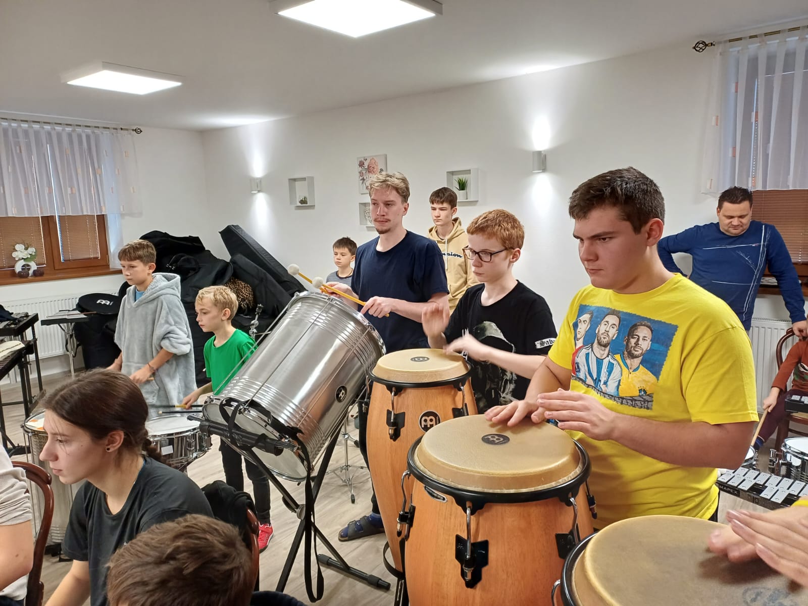 Naši bubeníci a tanečnice absolvovali dnes již tradiční pracovní svatomartinský víkend. Nebylo to ovšem o husách a zelí, pravě naopak: mnoho dětí, nástrojů, not a pohybů. Na výsledky (společné) práce se můžete těšit na některém z nadcházejících koncertů či vystoupení. A teď už můžeme uzavřít i Denní rozkaz č.2 a hajdy na kutě. Bylo to krásné a bylo toho moc🧡