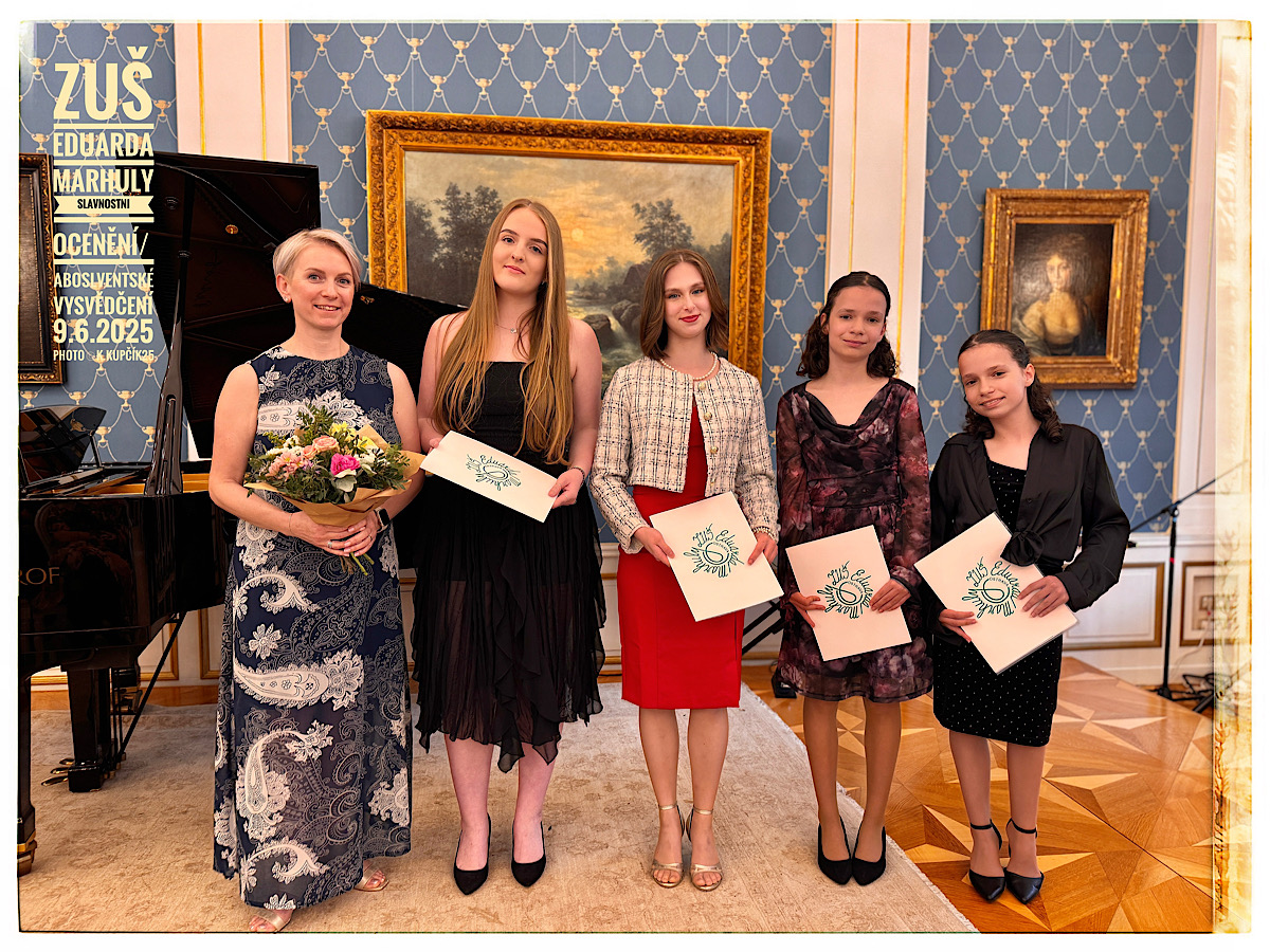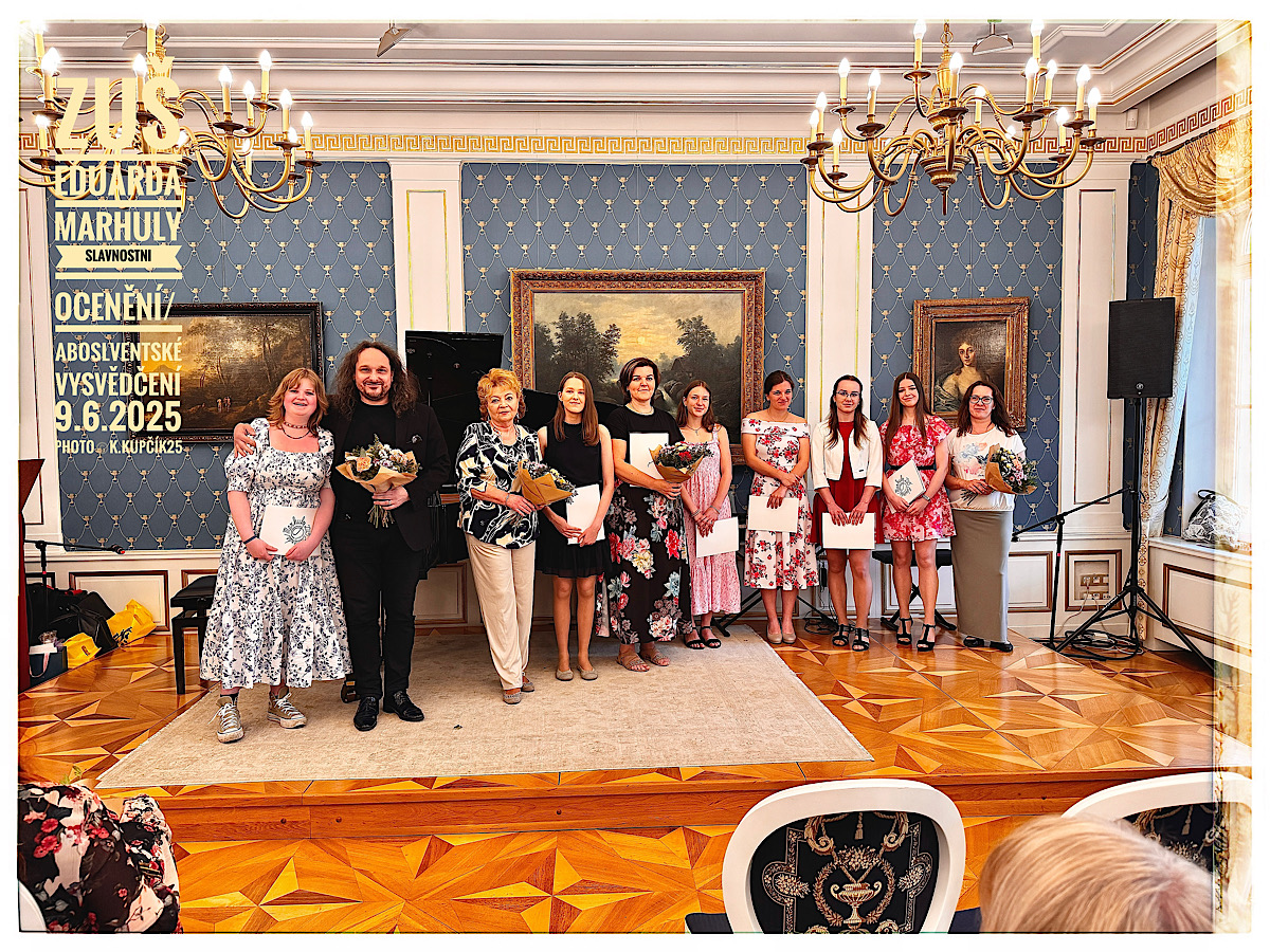 V pondělí 9. června 2025 se uskutečnilo v krásných reprezentativních prostorách vítkovického zámku slavnostní setkání nejúspěšnějších žáků a studentů naší školy. V průběhu celého školního roku opět svými výkony skvěle reprezentovali naši „Zušku“ na nejrůznějších přehlídkách, festivalech a soutěžích nejen v rámci našeho města a kraje, ale úspěšní byli i v celostátní a mezinárodní konkurenci.