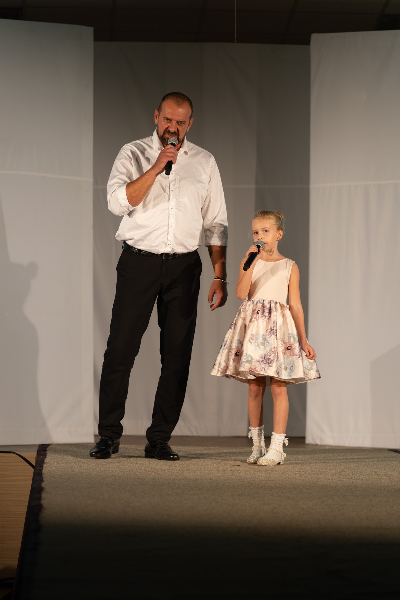 Tatínek totiž každý týden Viktorku doprovází do hodin zpěvu a s postupem času se mu zpěv zalíbil natolik, že začal zpívat i on sám. A tak ho Viktorka vzala i na své vystoupení 🙂 Spolu si zazpívali krásná dueta z autorské dílny Richarda Krajča a Jakuba Smolíka. Jak vidíte, naše „Zuška“ prostě rozehraje a rozezpívá každého.
